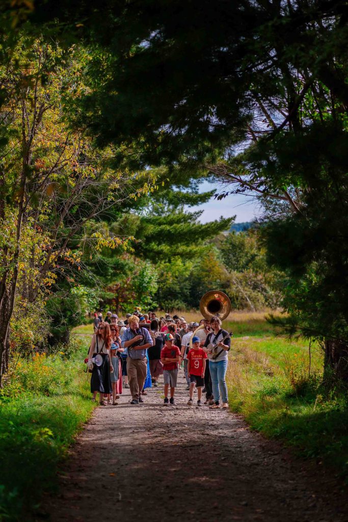 Le projet Le lait, les chèvres, la costumière, les abeilles, le miel, la fanfare a pour but de créer et de trouver des méthodes d’échange et d’engagement entre les gens et d’autres gens, entre les gens et les animaux, entre les gens et les choses. Bill Burns fait la rencontre des fermiers, des musiciens, des apiculteurs, des artistes, des étudiants et des animaux d’élevage de la communauté. Il veut connaître le fonctionnement des choses et les rapports entre les gens et les animaux d’ici afin de révéler la poétique et la joie que recèlent ces relations ordinaires. Pour Bill, ce projet fait partie d’une performance de longue haleine mettant en jeu nos relations avec les autres espèces, le commerce mondial et la production alimentaire.